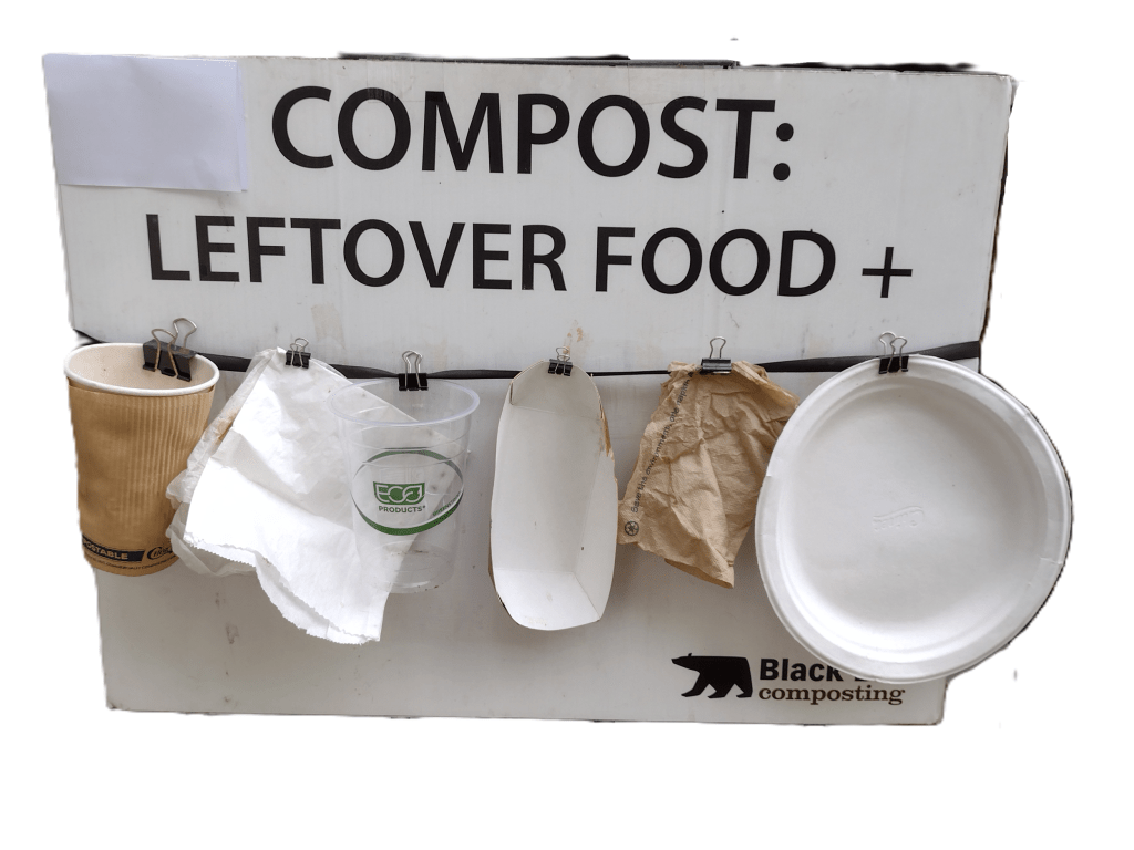 - Plastics certified as compostable by BPI so long as the items are individually labeled as “compostable.”