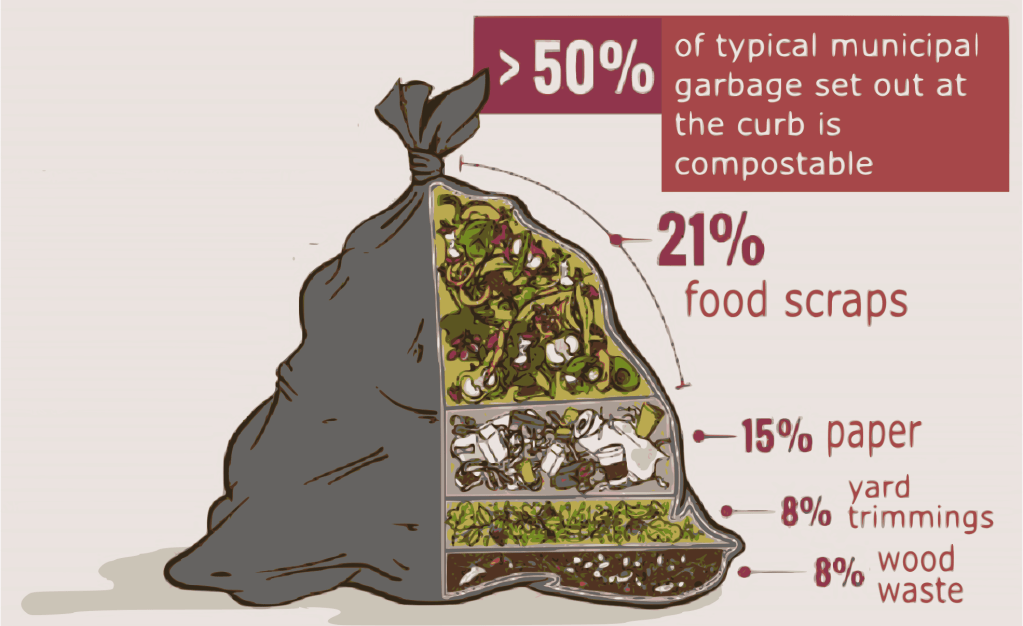 Including yard waste, some 50% of household trash, by weight, is compostable.